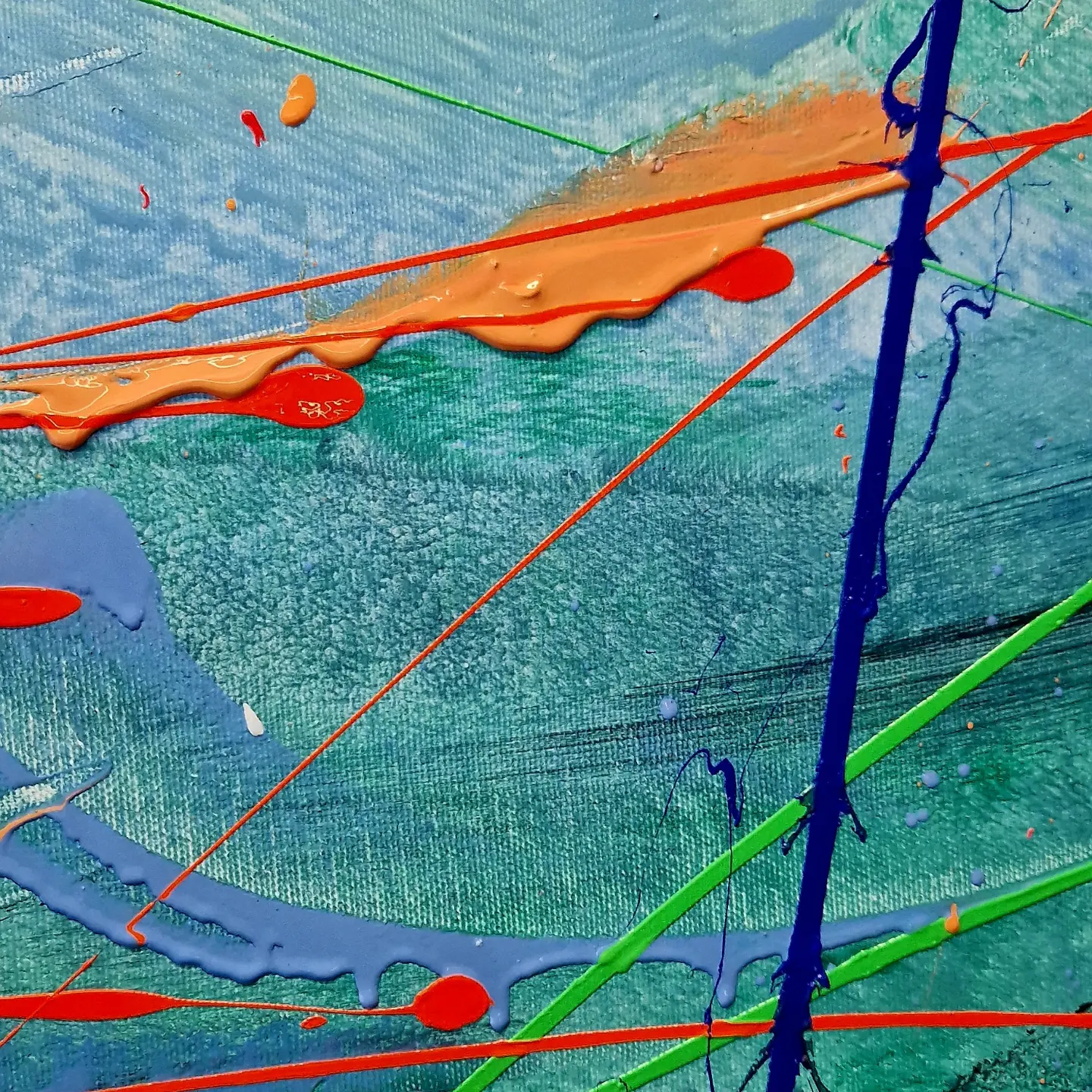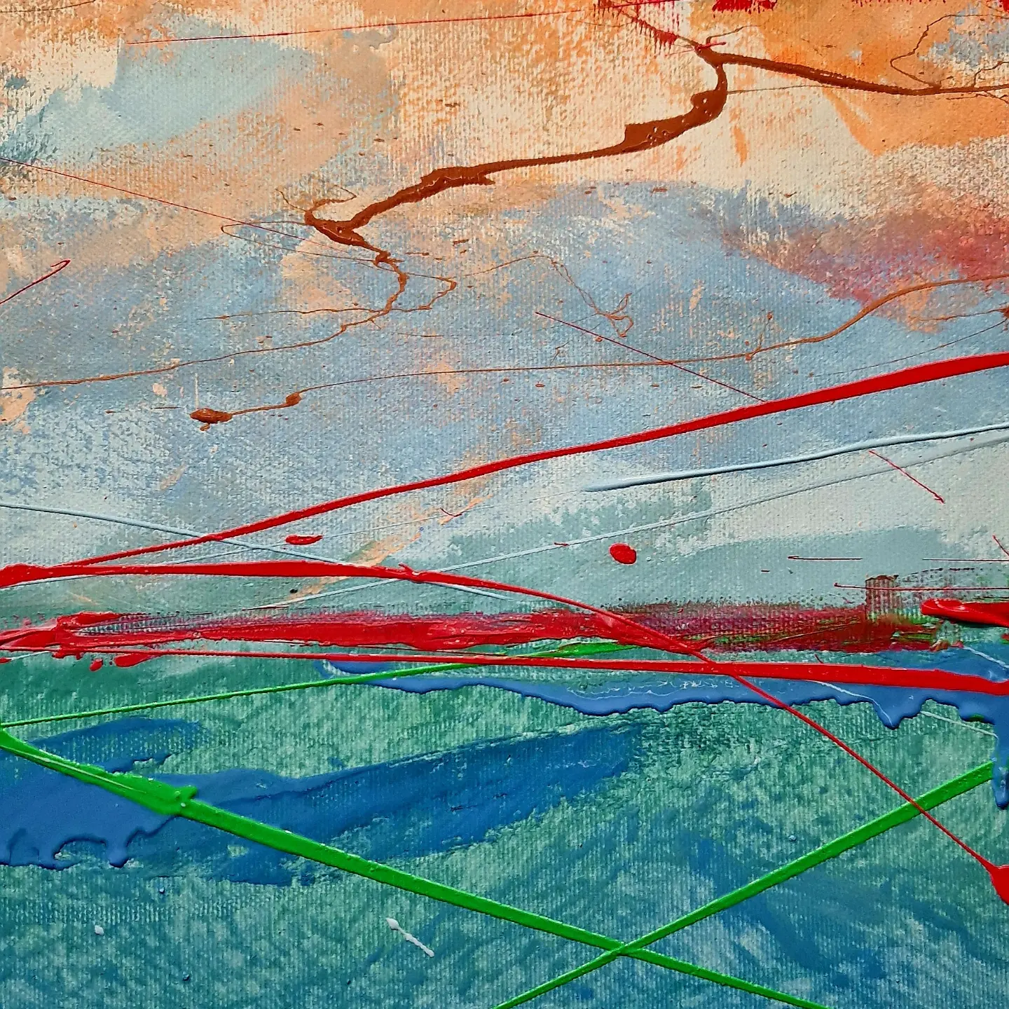 «Alicante coast» nace de mi deseo de capturar la esencia de la costa que tanto amo, la que con orgullo llamamos la millor terreta del món. Pintar esta marina es para mí una experiencia sensorial. Quiero que el espectador sienta la brisa salada sobre la piel, que perciba el eco de las olas rompiendo suavemente y que respire el aroma del Mediterráneo que tantas veces me acompaña. Además, cada trazo y cada salpicadura de color funcionan como un puente entre orden y espontaneidad, entre contemplación y movimiento.