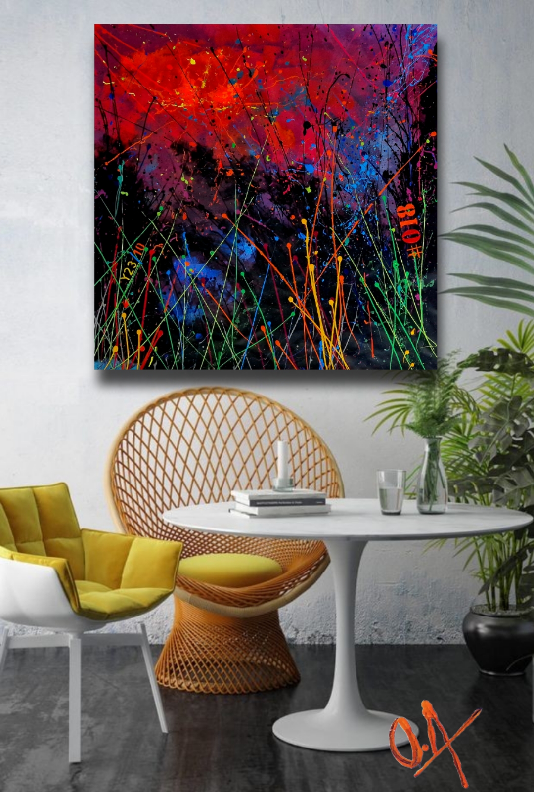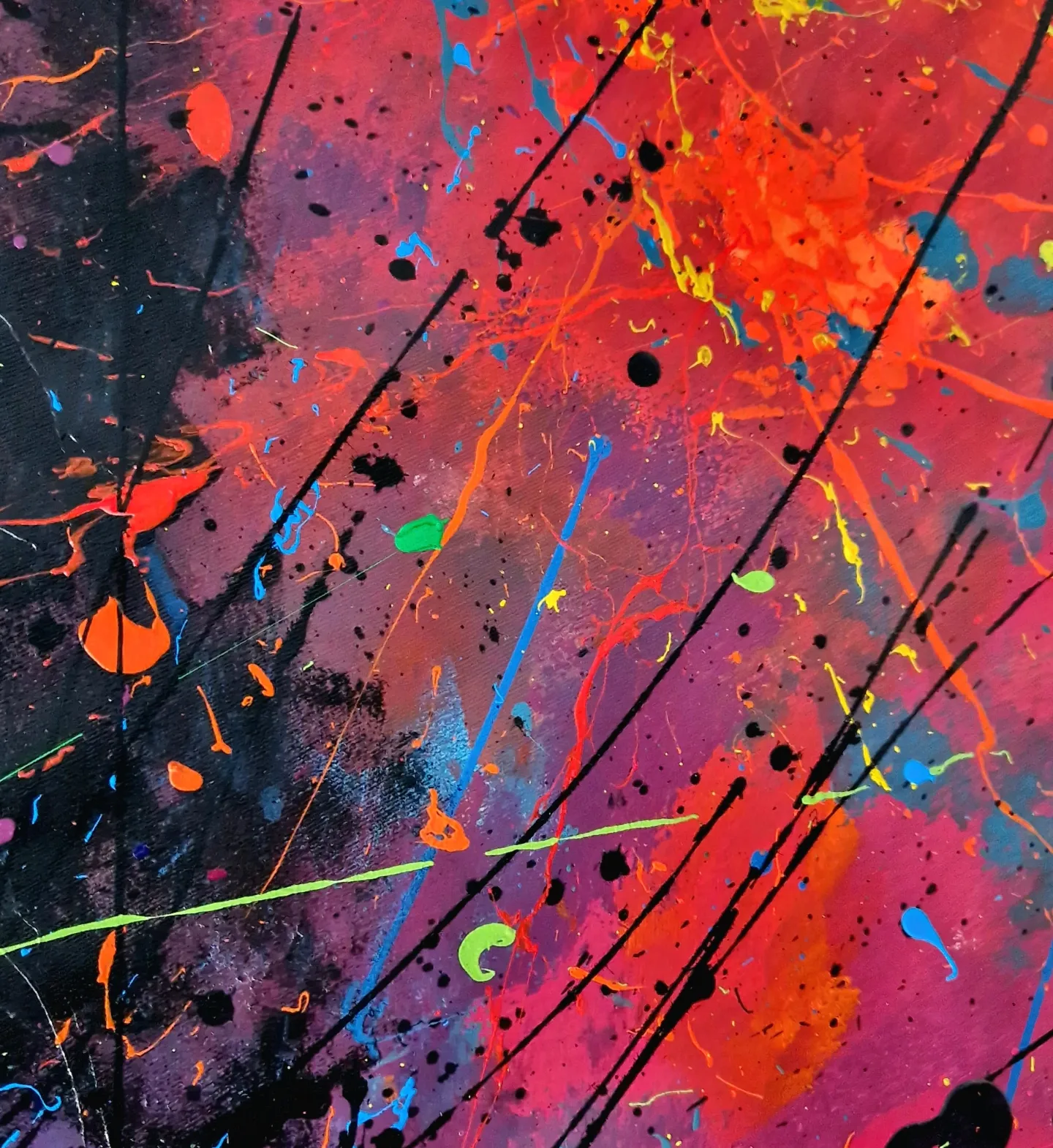 Durante el proceso, dejo que la pintura respire y se mueva con autonomía. El gesto, heredero del action painting, es aquí una forma de meditación en movimiento. Cada trazo es impulso y precisión, caos y armonía. En esta obra confirmo que mi serie cósmica sigue expandiéndose: un universo pictórico en constante crecimiento donde cada cuadro revela un ángulo distinto desde el que contemplar la infinitud.